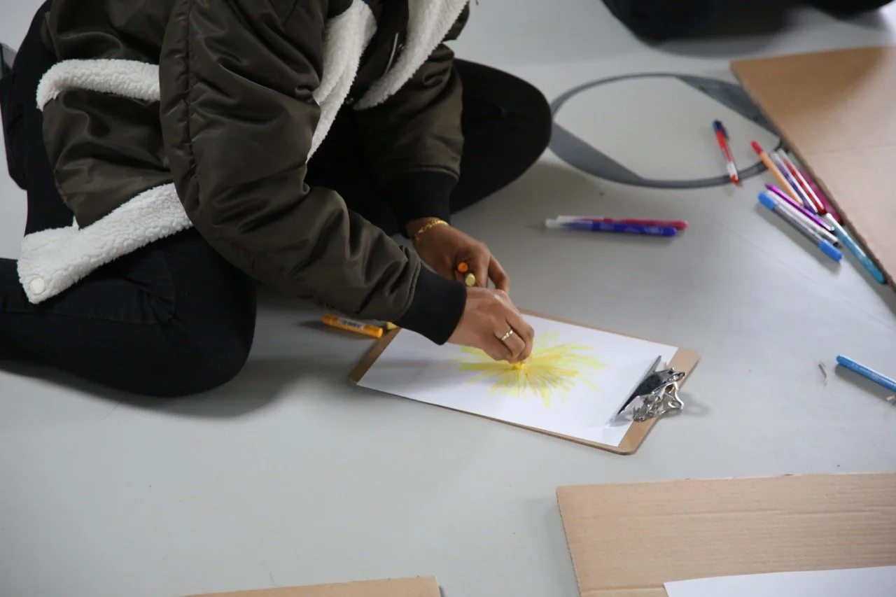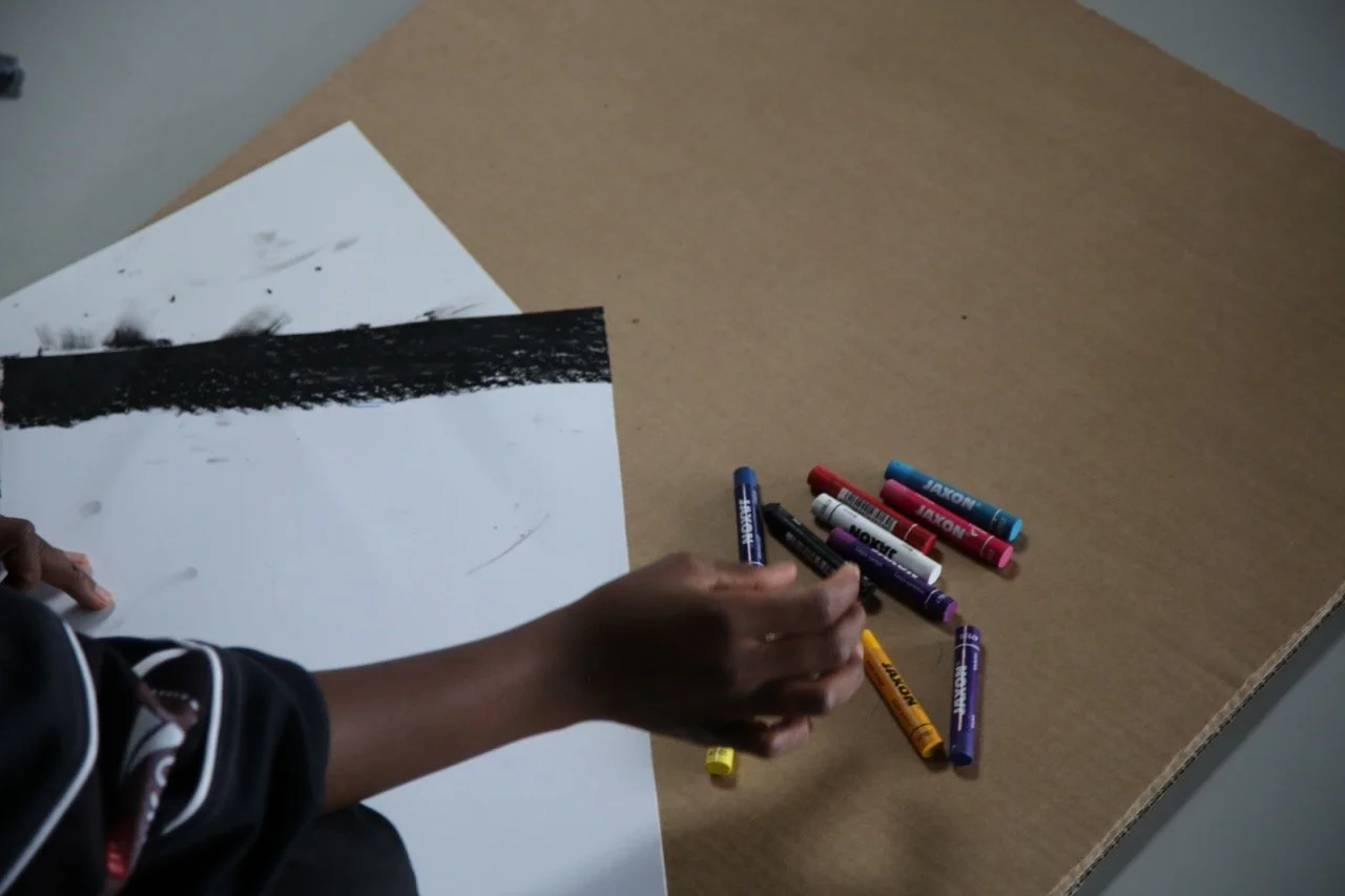 It is important to Lerato to ask many questions in her art. And so one of her most famous installations shows a question that is (of course) emblazoned on a red canvas: "Are we the people?". The word "Are" and the "?" in neon yellow light tubes frame the black lettering "We the people" printed on the canvas. Lerato explains to us that the constitutions in the USA and in her home country South Africa begin in the exact same way: "We the people..." However, she wonders whether this really means all people and whether everybody is allowed to have a say. For example, the right to vote, which gives people a voice, was only available to white men for a long time. Women and People of Colour were excluded. Rights for children are also something relatively new – that children are protected and represented by the government. It is important to Lerato that everyone is heard and understood and has a voice. After all, everyone is part of society! Then the world will be a better place if all voices really count, Lerato thinks.
